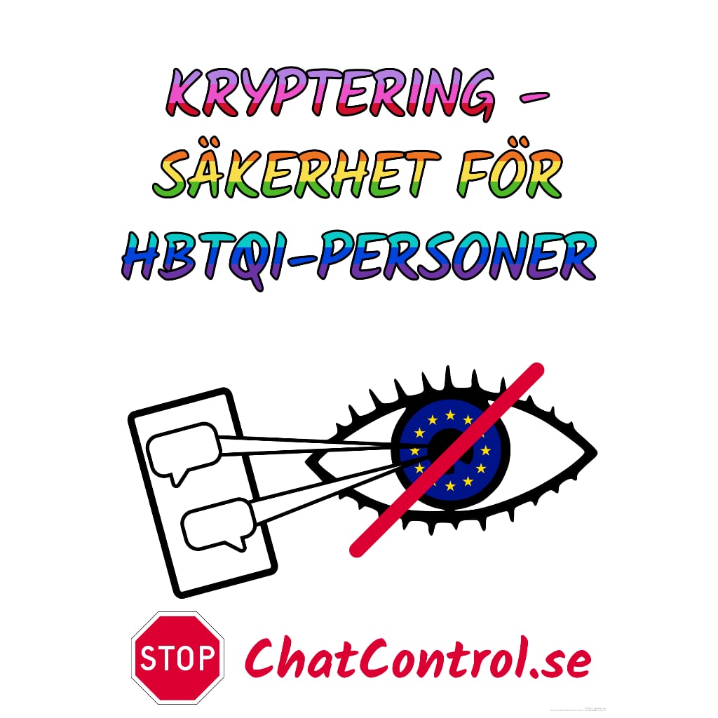 Queer people have been surveillance targets of governments and police when laws restricted their existence and when they organized to protest for equality. Due to social stigmas that continue today—even in Sverige—many queer and questioning people rely on secrecy for their comfort and safety. Privacy is a fundamental human right that has been essential for organizing the advancement of every other civil liberty. We cannot lose the right to digital privacy simply because there are some bad people in the world.