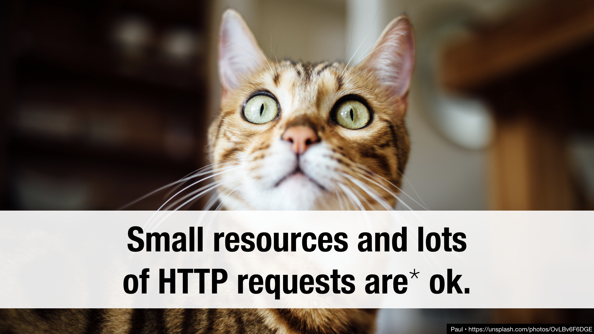 We tested these assumptions. I wish I could share the data from them, but you can find more rigorous tests that prove this better than what we did. The important part is that this allowed us to come to an agreement that small resources and lots of HTTP requests can be ok.