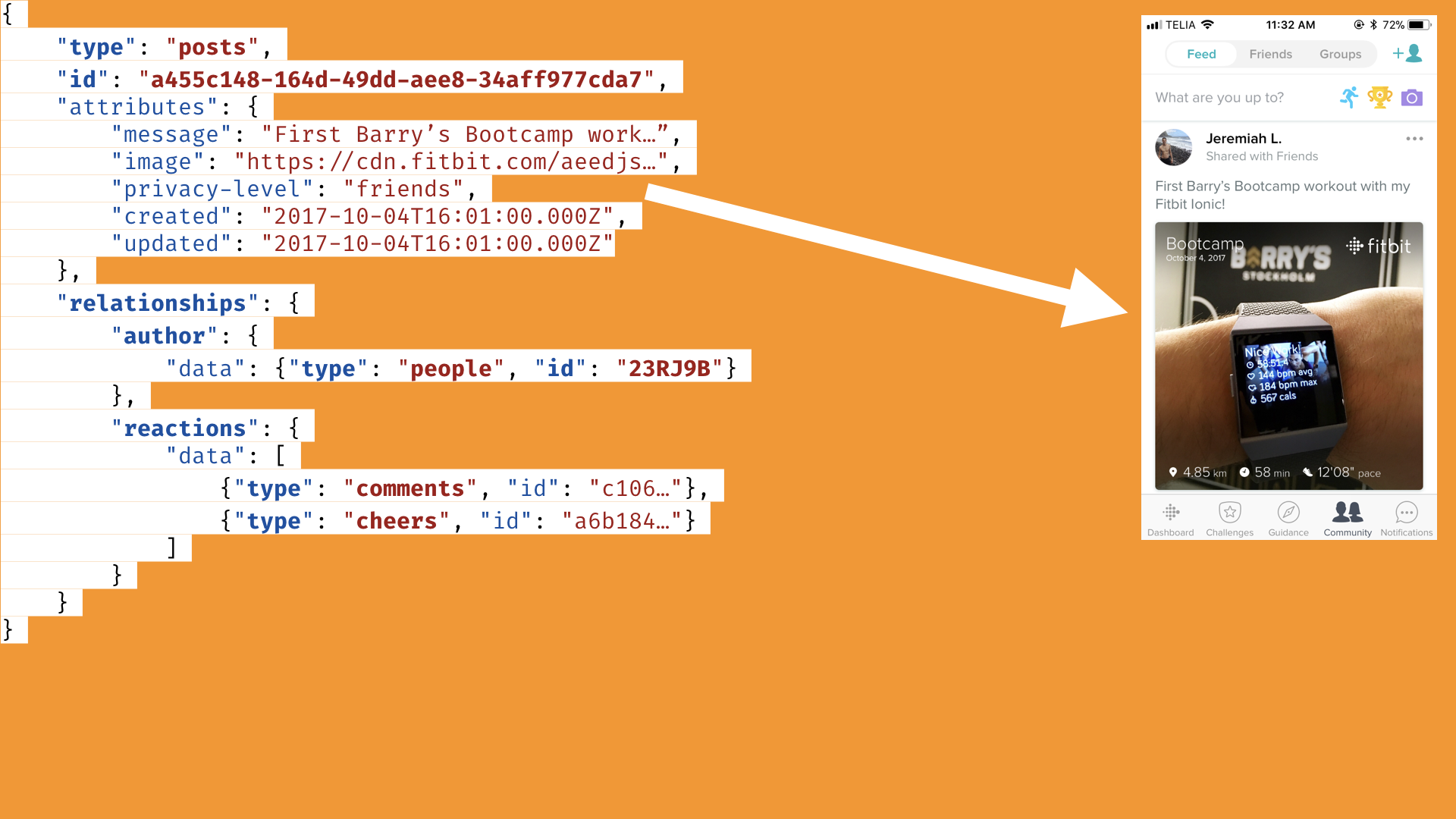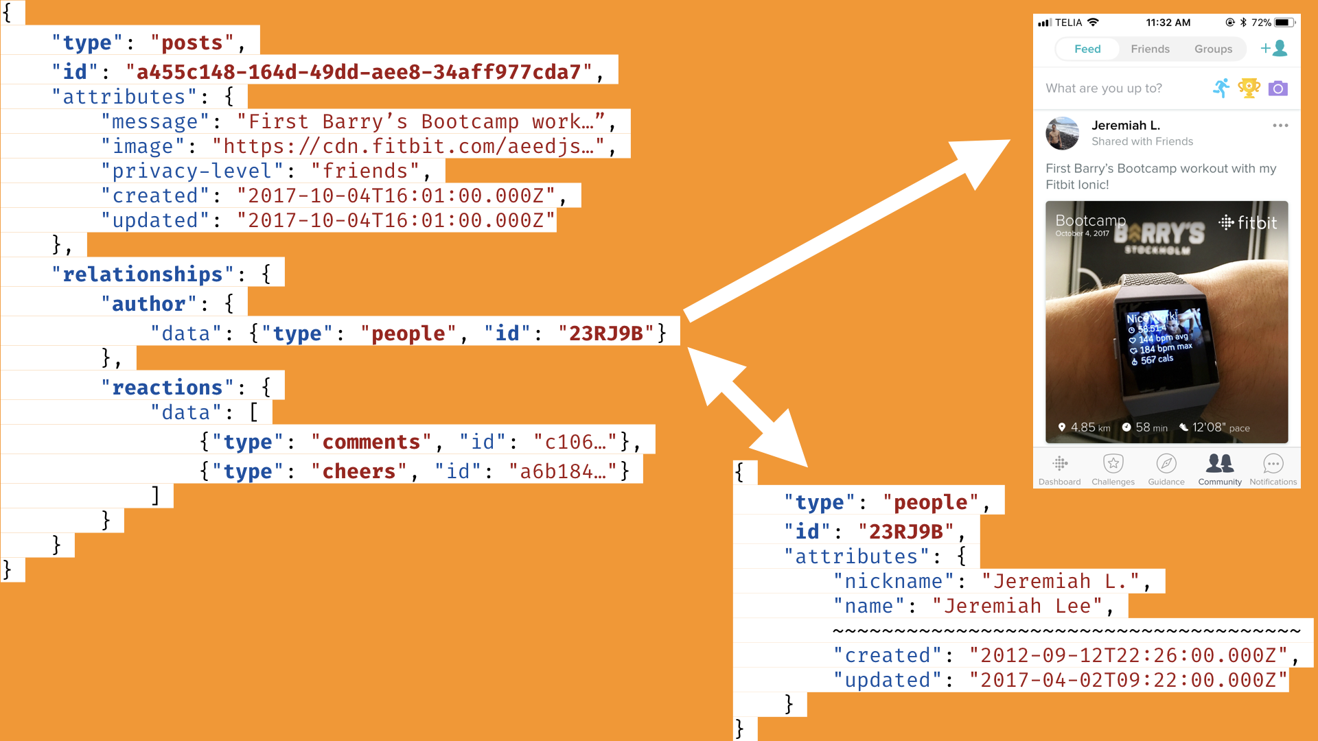 I’m going to talk about the Web API problems Fitbit had and how and why the JSONAPI.org specification’s features helped. I have consulted with many companies on their Web API designs and I have seen common patterns emerge. While I am using Fitbit as an example, I suspect its problems will feel familiar to you.