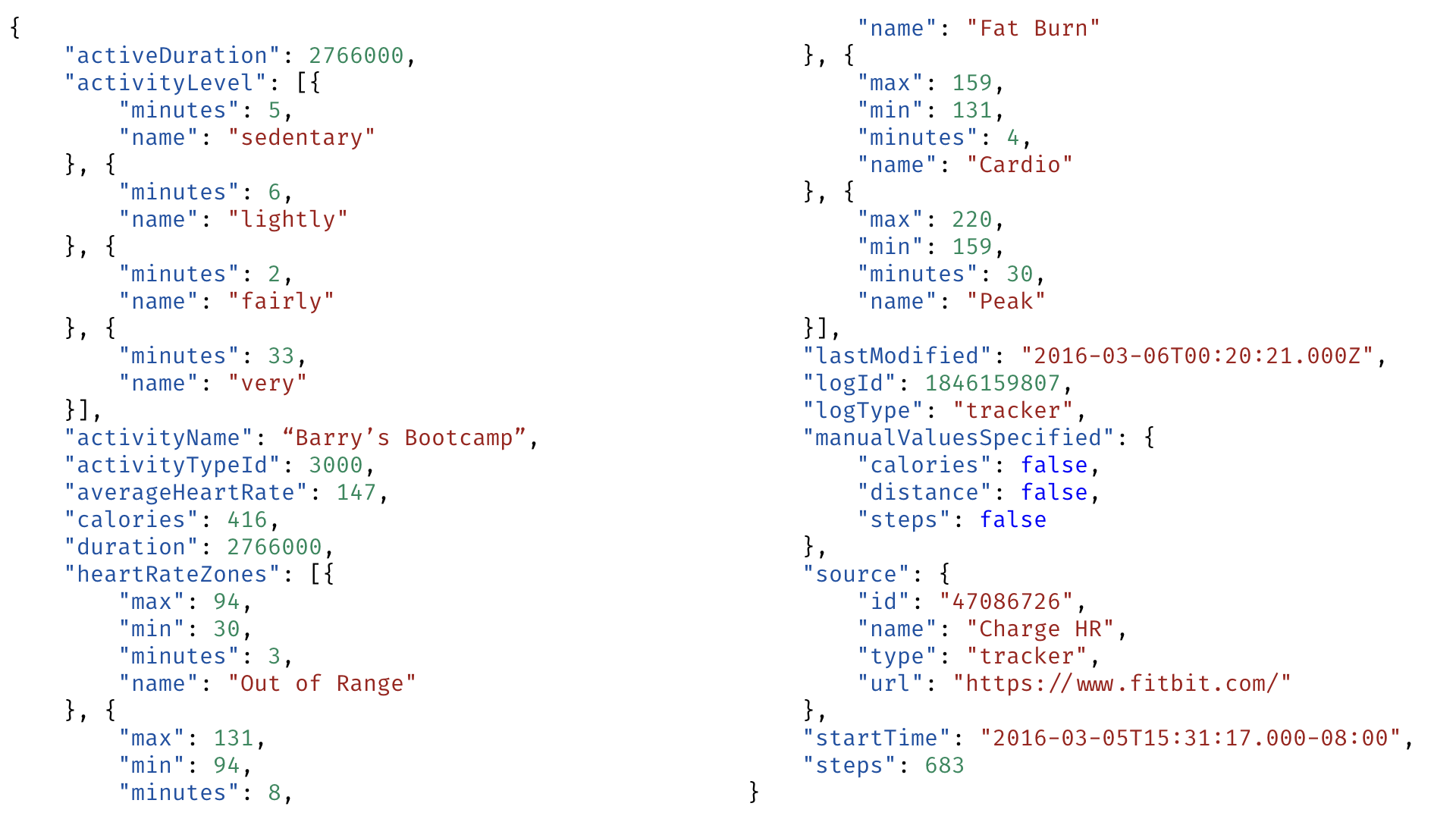 Before I get started, I need to make a disclaimer: some of this information is aspirational. I helped get this going at Fitbit, but I do not know the current state. In April, I moved to Sweden for my husband’s work. As far as I know, none of Fitbit’s JSON API-based endpoints have been released on its public API. The views represented here are my own and have not been reviewed by Fitbit.