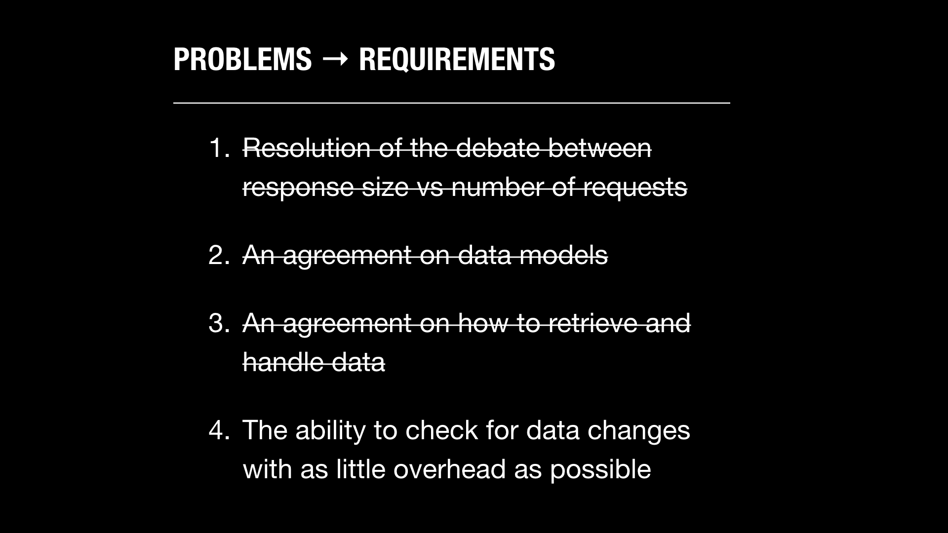 The first problem: client teams had very different perspectives on how they wanted to retrieve information from the server.