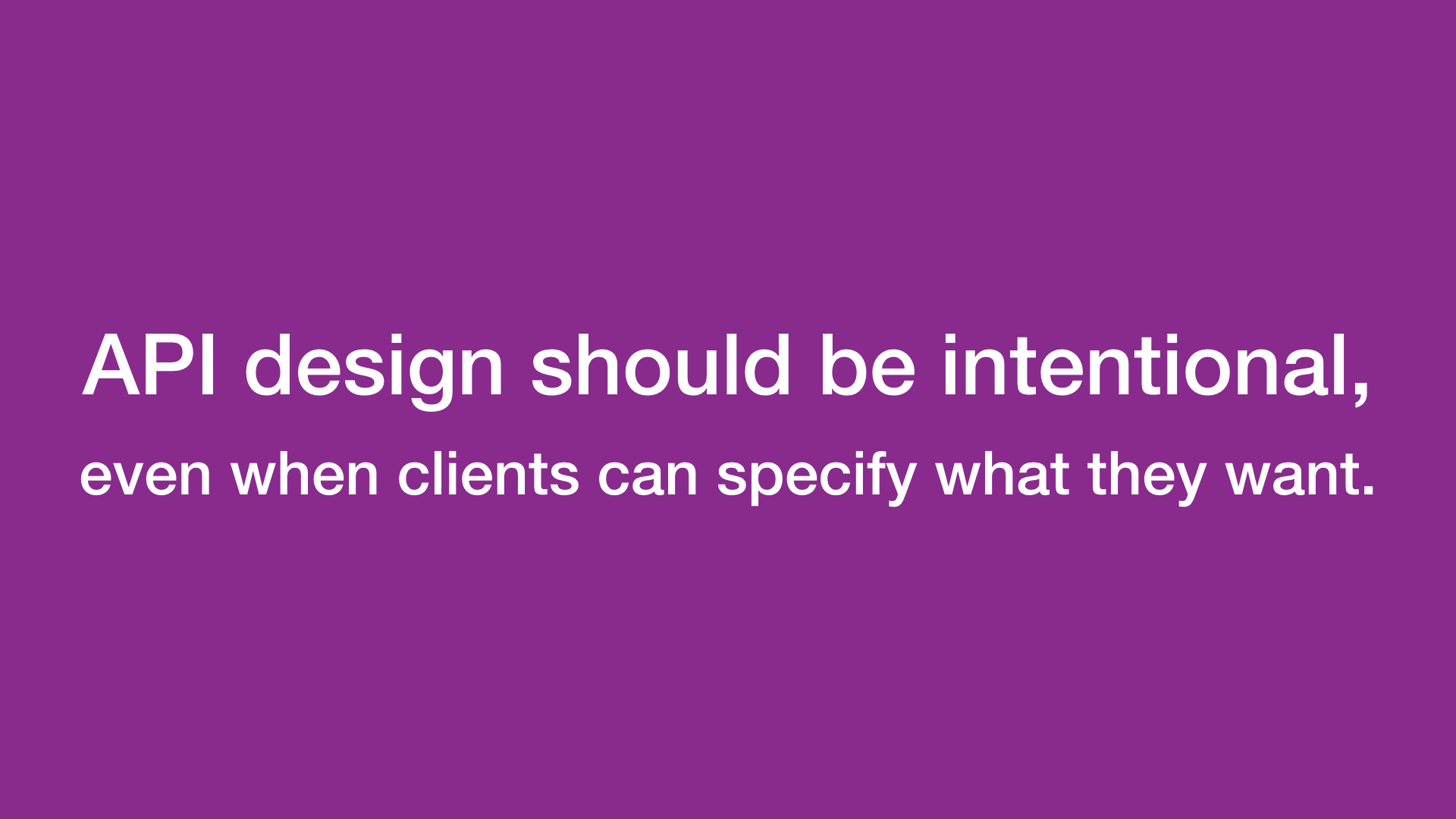 I hope that I’ve convinced you that designing data models with intent and study of client needs is not a step that can be skipped. Both GraphQL and JSON API give clients control over what data is returned in the API response, but that does not mean highly intentional API design does not need to happen.
