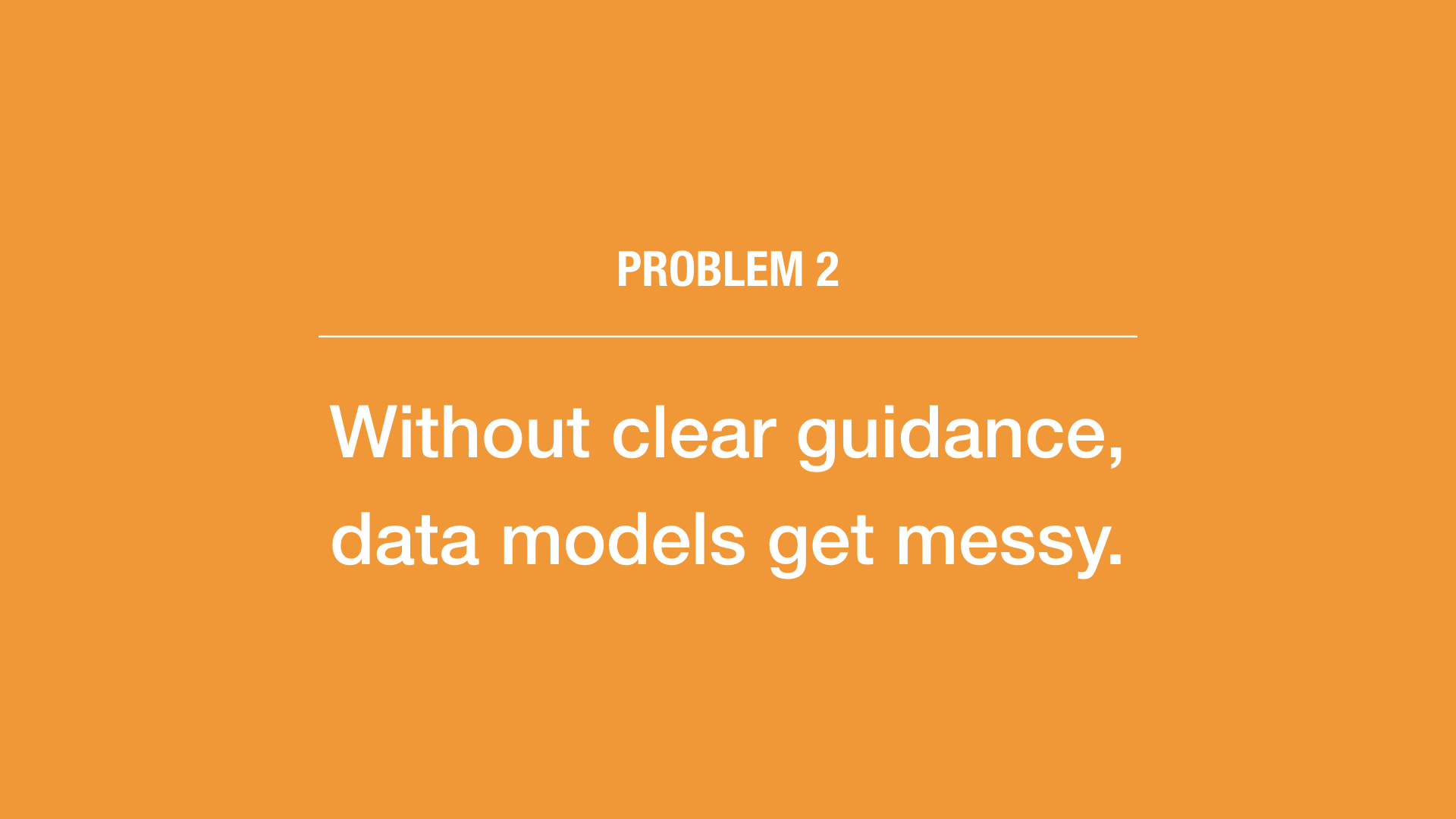 The second problem: without clear guidance, the data models got messy. Because of the large amount of data available, API endpoints started to resemble view-models instead of well-defined, normalized data models. Teams regularly overloaded existing endpoints in order to not make clients make another API request. Endpoints were filled with loosely related data instead of being well-scoped. Often, data would only be split across multiple endpoints when there was a new distinct view in the app when another request could be justified to the client developers. This could be fine, except the experience evolved over time. What data was needed for a view changed, so the data seemed arbitrarily split. There was no librarian.